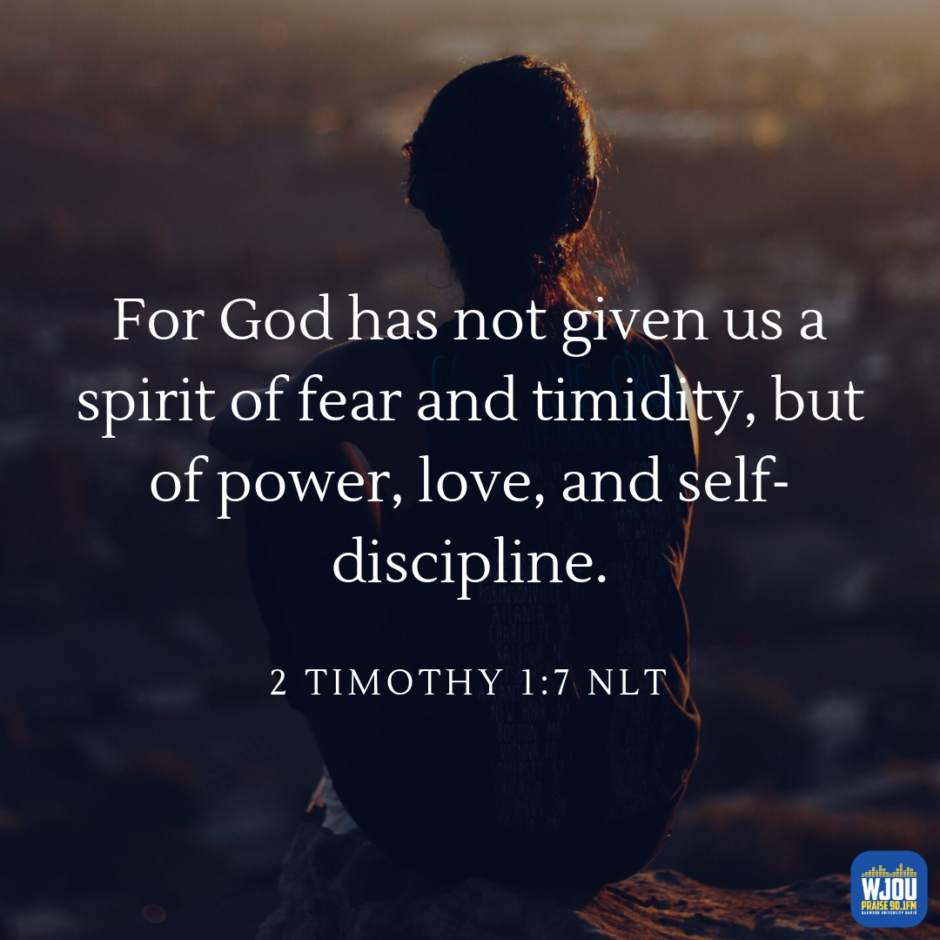 2 Timothy 1:7 NLT “For God has not given us a spirit of fear and timidity, but of power, love, and self-discipline.”
