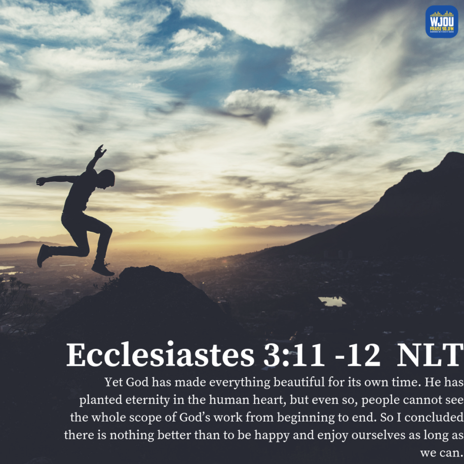 Ecclesiastes 3:11-12 NLT “Yet God has made everything beautiful for its own time. He has planted eternity in the human heart, but even so, people cannot see the whole scope of God’s work from beginning to end. So I concluded there is nothing better than to be happy and enjoy ourselves as long as we can.”